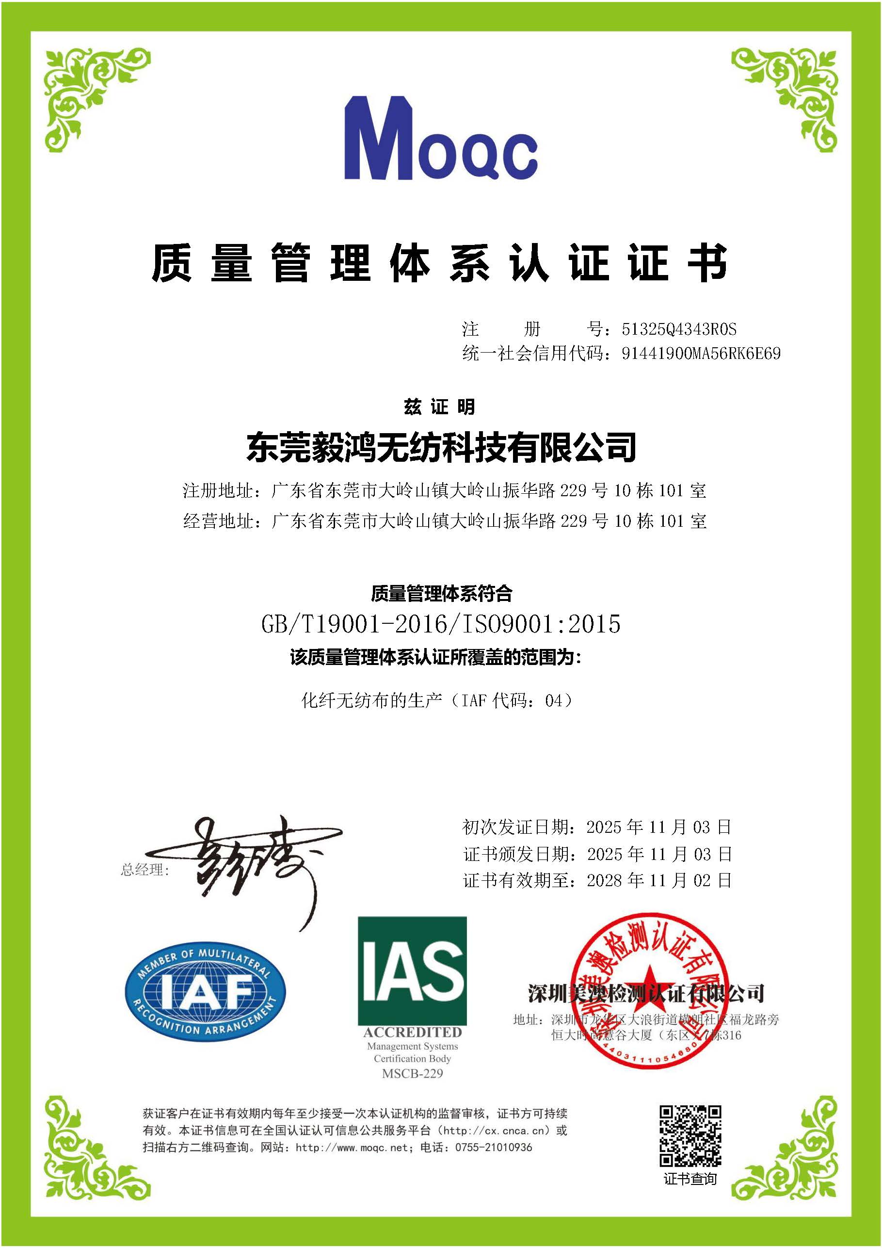 (GB/T19001-2016) CERTIFICATE